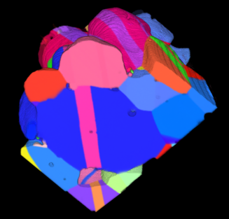 3D reconstruction of pressureless sintered copper, shows how the microstructure of separate powder particles bond to form a single piece
