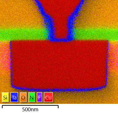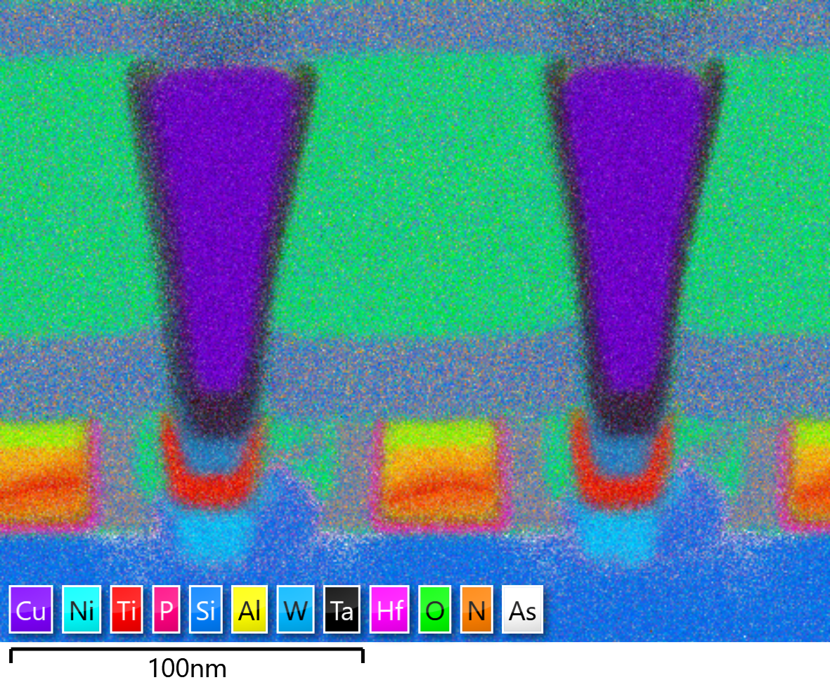As the complexity of devices increases, no matter what their function, the value of single wafers increases. As this value increases, it becomes less desirable to break a wafer to perform physical analysis tasks. This increases the demand to perform elemental characterisation on bulk specimens. One of the best ways to achieve spatially resolved elemental characterisation is using the scanning electron microscope and EDS. The challenge for characterisation in SEM, or indeed a focused ion beam (FIB), is that although most of the nanometre scale features can be imaged using low kV electrons, elemental analysis at this resolution and under these conditions is not typically possible.