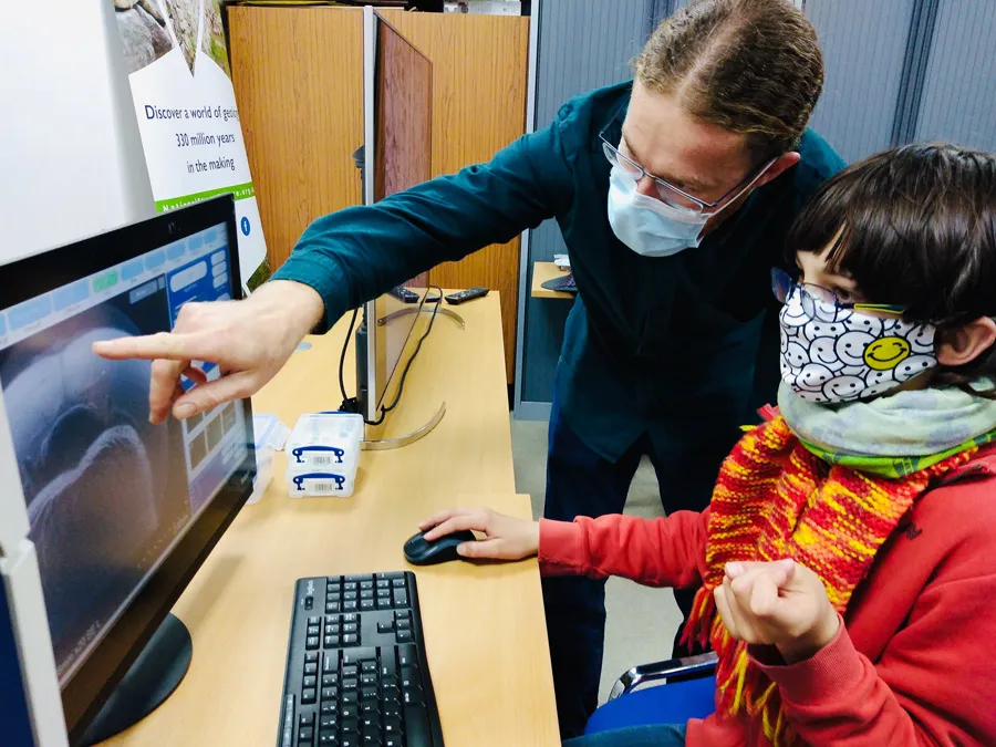 Student getting hands-on experience of the SEM at workshops held at the National Stone Centre. Credit Kate Bellis