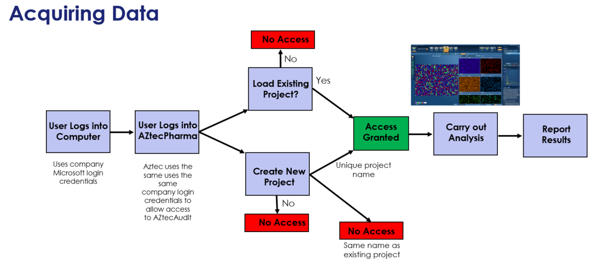 The first step to addressing these requirements was to create a dedicated version of AZtecLive called AZtecPharma. This new platform has the same look and feel as AZtecLive, but with only EDS capabilities. To satisfy the first requirement, AZtecPharma has a “User Login” screen to gain access. It uses ‘Windows Credentials’, which means that the local IT department can control user access and password protocols.