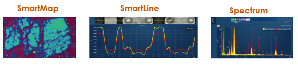 1. SmartMap – Contains spectral data from an area of the sample, where each pixel contains a full set of X-ray data.