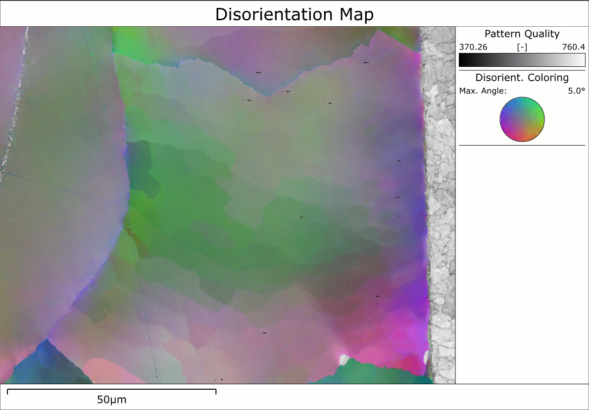 With the advent of advanced pattern matching methods, as implemented in our AZtecCrystal MapSweeper software, we can start to measure that lattice distortion. Such an approach has been used before on martensitic steels (see Winkelmann et al. (2018), Physical Review Materials 2, 123803), and I was curious to see what this would show in these dissimilar weld samples. Luckily, I have access to development versions of our software and was able to test this functionality using a beta version of MapSweeper: the results are very interesting and provide a further layer of information that we can correlate with the measured physical properties, enabling a more complete understanding of potential failure mechanisms. In short, it is the carbon content that is key to the failure of these welds. To find out more about this fascinating case study, you will need to listen to an upcoming webinar that I am presenting with my collaborators from FemtoTools on November 9th. You can register for this webinar here.