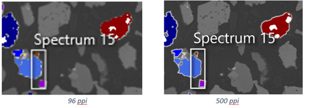 You can’t really see the differences unless you zoom into a particular region. Here you can see that the 500 ppi image has much more detail than the 96 ppi image.