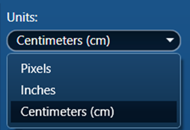 In this settings panel, you can choose how big you want your exported image to be (as we discussed earlier), either in physical dimensions (cm or inches) or in pixel dimensions.