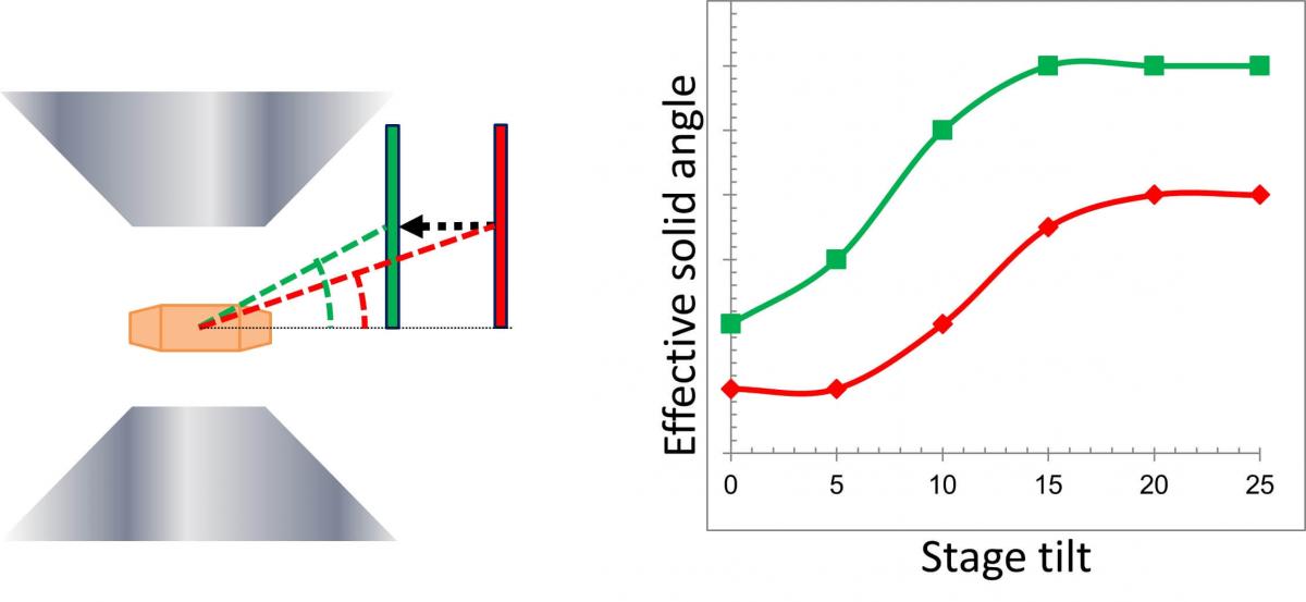 Figure 2. Effective solid angle as a function of TEM EDS detector positioning.