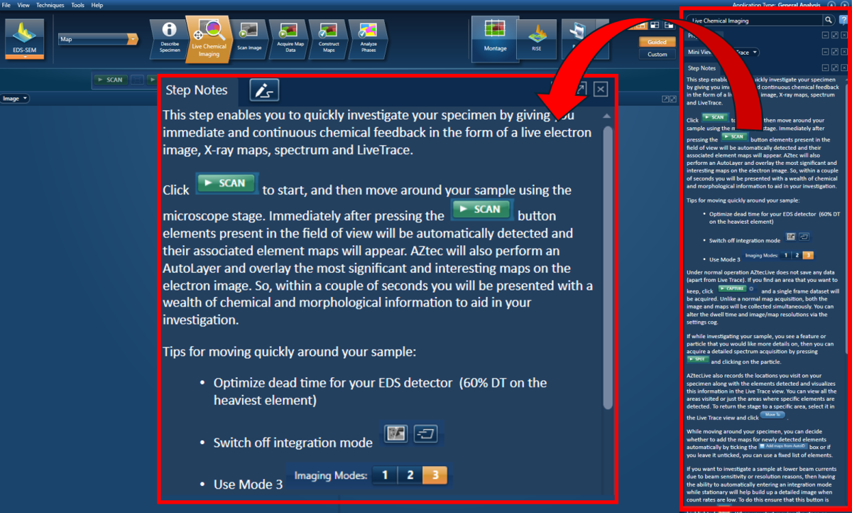 If we look at our AZtec software platform, then the first evidence of help that a user will see is in the form of ‘Step Notes’