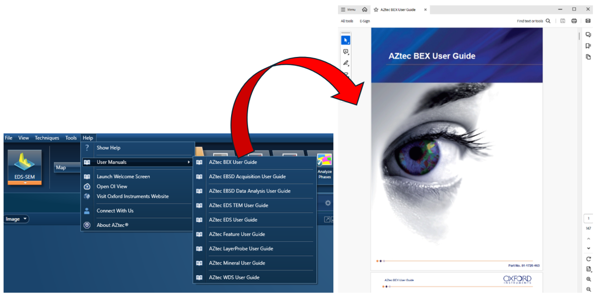 In addition to the standard F1 help, we also supply a user manual for off-line reading, which is often used by those wishing to create their own specialised training materials that include the electron microscope operation too.