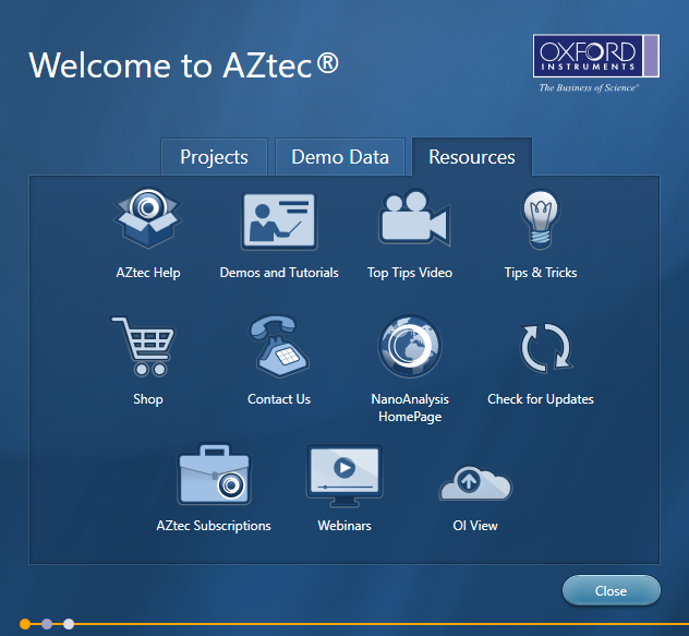 We have found that a video showing someone how to use a particular part of the software is very effective, especially when they see it performed on a real sample. The problem of getting that video to the user at the right time is negated if there is a link to the video within the step itself. Hence, users of AZtec will notice that, on certain areas of the software, there are help video icons. These allow you to use AZtec while following the instructions in the video: