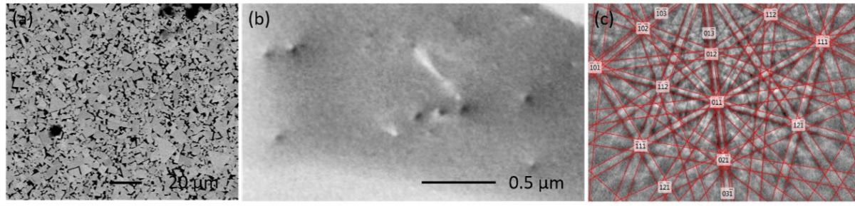 Les électrons rétrodiffusés sont des électrons de haute énergie qui proviennent du canon d’électrons. Ces électrons interagissent avec l'échantillon et sont rétrodiffusés hors de l'échantillon vers le détecteur. Dans l'imagerie standard rétrodiffusés, les éléments avec un numéro atomique plus élevé émettent plus fortement ses électrons que les éléments avec un numéro atomique inférieur. La différence d'intensité des électrons émis permet de révéler des régions de composition chimique différente comme le montre la figure 1a. Les électrons rétrodiffusés peuvent être utilisés pour comprendre les défauts cristallographiques. Deux techniques qui exploitent les électrons rétrodiffusés, l’EBSD et l'imagerie par contraste de canal d'électrons (ECCI), sont discutées ci-dessous. Des exemples illustratifs de ces techniques peuvent être trouvés sur les figures au milieu et à droite.