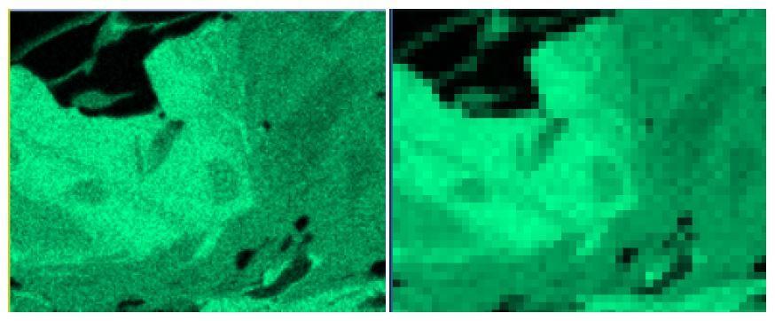 Examinons-nous maintenant l'effet du regroupement sur les cartes. Un facteur de regroupement de quatre combine 16 pixels adjacents de chaque carré 4x4 en un nouveau pixel (figure 2).