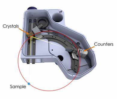 Figure 1. Configuration d'un détecteur WDS illustrant le mouvement du spectromètre lors de l'analyse WDS.