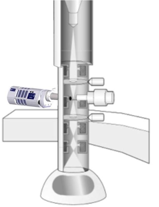 Figure 1. Coupe transversale MET montrant les lentilles et la position de l'échantillon.