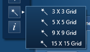 The easiest way to set thresholds is using our magic wand thresholding tool. With this you simply click on features in the image and thresholds will be created! When we do this, we’re looking for all the grey levels in the little grid at the end of the cursor which you can see in the image below.
