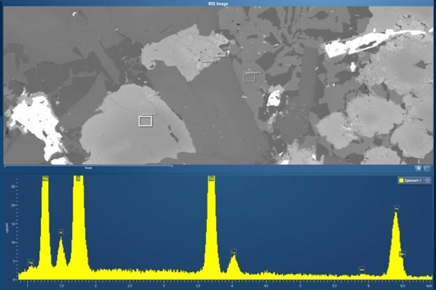 Control of a microscope scan also enabled an EDS system to collect EDS information while scanning the beam over the sample and construct images of intensity difference over the scanned region, ie X-ray maps. Therefore, interesting or complex areas could be investigated in more detail using X-ray mapping to show a more complete picture of element variation.