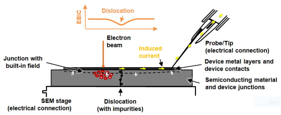 On the FIB, we are used to working with nanomanipulators which can be accurately positioned and used to make contact to the sample at specific points. If the nanomanipulator has suitable electrical connections, then the tip can be used as an electrical contact point and electronics can measure the current flowing through the probe as the electron beam is scanned over the sample. This generates an image showing variations in the induced current and thereby provides a method for imaging defects on the nanometre scale.