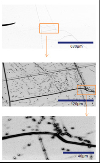 Figure 2 - EBIC imaging of defects and grain boundaries across multiple length scales.
