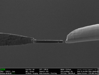 EBIC (electron beam induced current) compatible nanomanipulators can be used both as electrical contact for EBIC imaging and for lift-out of samples when used on a FIB. The setup looks as shown in figure 1. The OmniProbe is used as electrical contact while the sample backside is grounded via the SEM stage. An alternative method for ensuring good ground connection would be to use the EBIC sample holder, which we have recently developed.