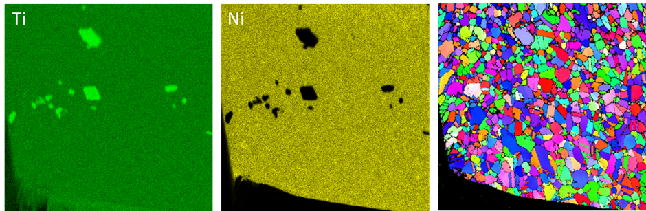 Another advantage of our approach is that new developments in in 2D can be quickly implemented into 3D. A good example of this is AZtec TruPhase. This is an innovative tool which combines EBSD and EDS while mapping for accurate phase maps of similar crystal structures. While initially created as a 2D tool, it can be used in 3D and adds confidence in the destructive analysis performed. The example below is a single slice taken from a 3D run, showing an additively manufactured nickel superalloy with two crystallographically similar, but chemically different phases. The use of the TruPhase means the correct phase can be easily assigned.
