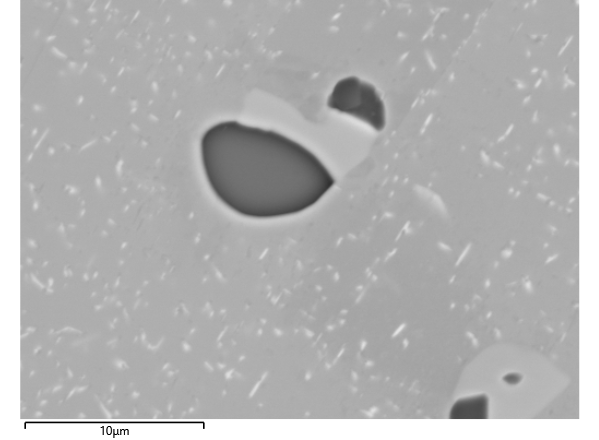 Figure 2. BSE image of a steel sample with inclusions with sizes ranging from 100nm to >5 µm