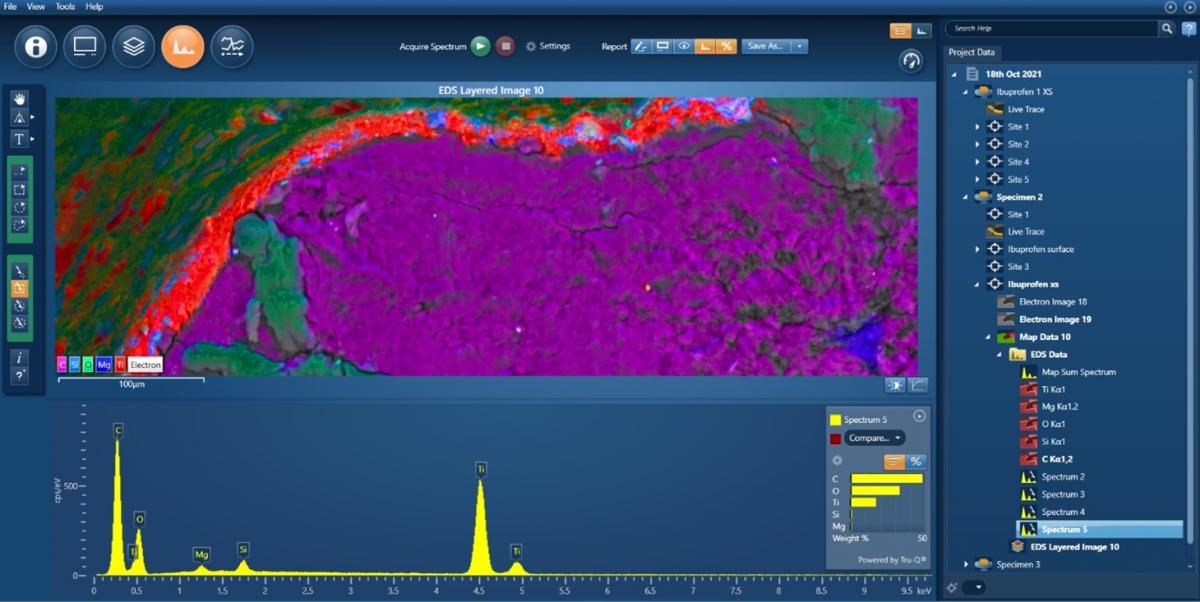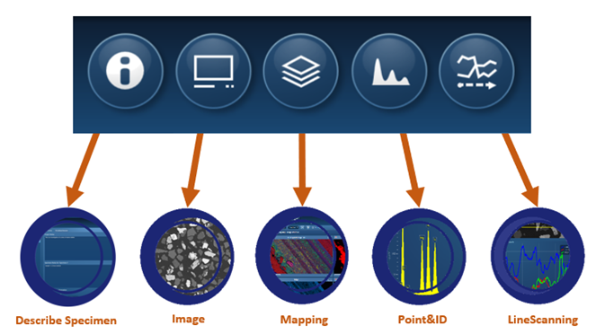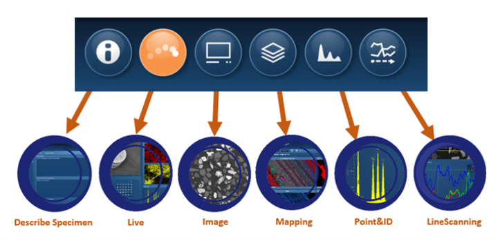 It was clear, that any EDS software needed to be equally as ‘easy to use.’ So, a complete redesign of the AZtec interface was required. One of the design goals set at the project outset was that a user should be able to get a result in just a few clicks. To that end, instead of navigators, we created self-contained steps for each acquisition type (image, maps or spectrum).
